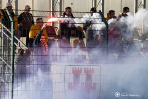 Kontra Namysłowa. Po dośrodkowaniu obrońca próbował wybić piłkę, jednak tak niefortunnie, że ta odbiła się od drugiego zawodnika GKS-u i wpadła do bramki.