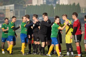 W niedzielnym meczu spotkały się dwa zespoły ze szczytu tabeli. Zawodnicy z Namysłowa przybyli do Grodkowa z wyraźnym zamiarem zdetronizowania lidera, grodkowianie byli tego świadomi i nie zamierzali im tego ułatwiać. W rezultacie mieliśmy dobre widowisko. Aż żal, że złe warunki atmosferyczne zniechęciły część kibiców, zostali tylko ci najbardziej zagorzali. Wiejący tego dnia silny wiatr z pewnością nie ułatwił też zadania piłkarzom.